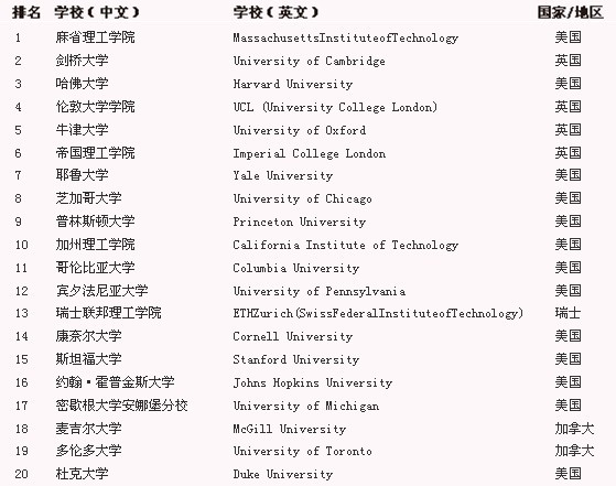 2012-2013年QS世界大學(xué)排名—TOP200排名