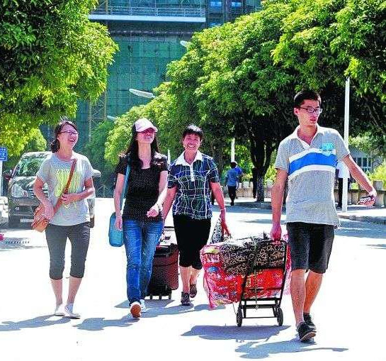 華南農(nóng)業(yè)大學(xué)2013級(jí)的新生陸續(xù)報(bào)到入學(xué),家長(zhǎng)幫忙拎行李。