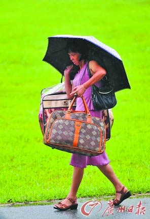 9月4日,廣東五邑大學正式迎來2013級本科新生入學,一位母親把拎行李的活一個人全給包了。