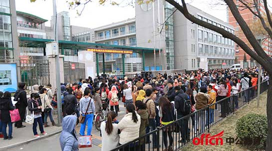 11月24日上午9時(shí),2014年度中央國(guó)家機(jī)關(guān)錄用公共科目筆試?guó)Q鑼開(kāi)考,本次考試涵蓋了全國(guó)31個(gè)。▍^(qū)、市),報(bào)名審核通過(guò)152萬(wàn)人將參與本次考試,有150余萬(wàn)考生參與本次“考碗”,規(guī)模之大、人數(shù)之多、競(jìng)爭(zhēng)激烈度創(chuàng)歷史新高。清晨八點(diǎn)的北京,天空中陰?kù)F迷蒙,氣溫微寒,此刻,考生們已經(jīng)攜帶所有考具早早來(lái)到考場(chǎng)外等候,更值得關(guān)注的是,幾乎所有人都在翻看手里的備考資料,不讓一分一秒匆匆虛度。