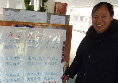 “北風(fēng)蕭蕭兮宿舍寒,小子瑟瑟兮把窗關(guān),久關(guān)不上兮冷淚滴。可干嘛不來報(bào)修?說你傻兮兮還不干!”這首亦莊亦諧的打油詩出自常州大學(xué)10號(hào)宿舍樓管理員霍中安之手。57歲的霍中安每天巡房、查修、檢查衛(wèi)生,照顧著一群剛上大一的小伙子。他的通知告示全部用打油詩詞的形式寫成,兩三天一更新,深得學(xué)生好評(píng),被稱為“最有才宿管”。