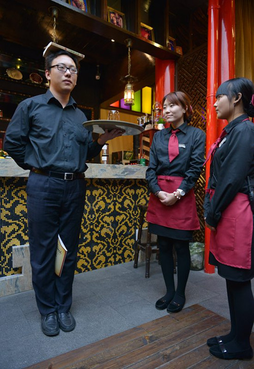 繆彬以自己的標(biāo)準(zhǔn)姿勢(shì)來規(guī)范員工
