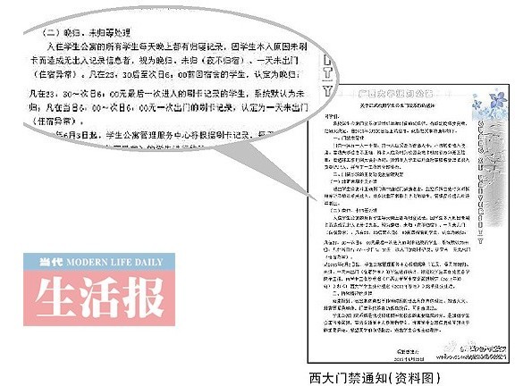 根據(jù)中國時(shí)刻報(bào)道,廣西大學(xué)規(guī)定,一日不出宿舍門即定為“住宿異!,要受批評(píng)處分。據(jù)說廣西大學(xué)的這條規(guī)定被指主要針對(duì)大學(xué)生“宅男宅女”現(xiàn)象。對(duì)此,廣西大學(xué)一名大四學(xué)生說,大四學(xué)生為了趕論文,一整天泡在宿舍里是很正常的事情,如果因此挨處分,是不是太過于一刀切?很多學(xué)生也認(rèn)為,周末確實(shí)有很多學(xué)生喜歡宅宿舍,就算打打游戲、看看電影,也不至于達(dá)到處分這個(gè)地步,因?yàn)樘幏謱?duì)于學(xué)生而言,是一項(xiàng)很嚴(yán)重的處罰,甚至?xí)S檔案,成為一生的“污點(diǎn)”。