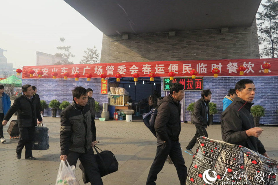 下了火車的人走出車站。讓人驚喜的是,西安人民的熱情好客,西安對(duì)備戰(zhàn)春運(yùn)下足了功夫,讓我印象頗深。