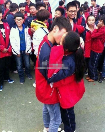 1月中旬,網(wǎng)上一組初中生當(dāng)眾求愛接吻的組圖引發(fā)網(wǎng)友熱議。這組照片顯示,在學(xué)校的操場上,一穿著校服的男生送了同校女生棒棒糖和鮮花,女生則送了男生小叮當(dāng)機(jī)器貓,兩人交換禮物后便擁抱在一起并當(dāng)眾接吻,一旁圍滿了鼓掌的同學(xué)。這組照片在網(wǎng)上被曬出后引發(fā)大量網(wǎng)友評(píng)論,多數(shù)網(wǎng)友在驚嘆如今學(xué)生早戀的同時(shí),認(rèn)為學(xué)生讀書期間會(huì)對(duì)異性產(chǎn)生好感實(shí)屬正,F(xiàn)象。