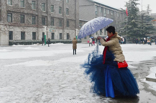 2月7日,考生在等待進(jìn)入中央戲劇學(xué)院備考區(qū)。當(dāng)日,中央戲劇學(xué)院藝考大幕開(kāi)啟。今年共有30254人報(bào)考中戲,比2013年增加約1萬(wàn)人。該校本、?朴(jì)劃招生595人,其中本科495人、高職(?疲100人。本科計(jì)劃招生人數(shù)較2013年擴(kuò)招99人,而專科則減招了100人。熱門的表演系話劇影視表演專業(yè),報(bào)錄比為137:1。而廣播電視節(jié)目主持專業(yè)因?yàn)槭歉裟暾猩衲陥?bào)錄比達(dá)到159:1,成為中戲最熱門的報(bào)考專業(yè)。