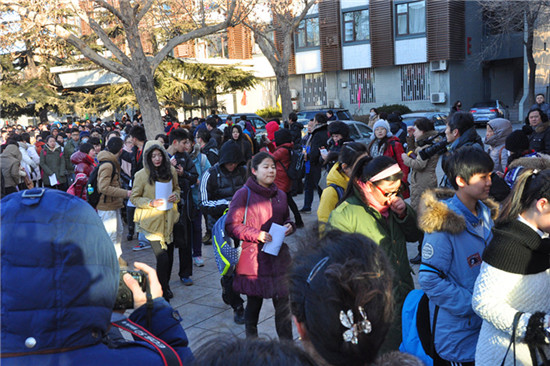 圖為考生們排隊進(jìn)入考場