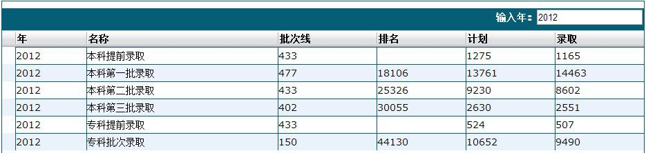 從圖4中可以看出,在2012年中分?jǐn)?shù)超過(guò)一本線但未被提前批和一本院校錄取的考生總數(shù)為2830人,這其中包括港澳臺(tái)及出國(guó)的考生,教育考試院對(duì)這一部分考生人數(shù)并沒(méi)有進(jìn)行統(tǒng)計(jì),所以缺少依據(jù)。