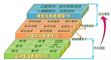 課程設(shè)置突出對“完滿人格品質(zhì)”與“創(chuàng)新學(xué)力”的培養(yǎng); 在以學(xué)科為基礎(chǔ)的課程中實(shí)現(xiàn)完滿的生活態(tài)度與能力的培養(yǎng);在以活動(dòng)為基礎(chǔ)的課程中突出知識(shí)的轉(zhuǎn)化與實(shí)踐應(yīng)用能力的培養(yǎng)