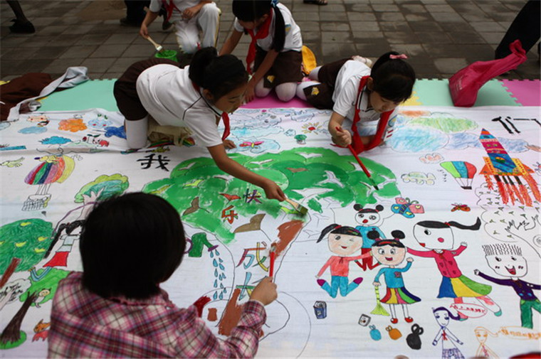2012年,學(xué)校操場(chǎng)慶六一長(zhǎng)卷繪畫活動(dòng)