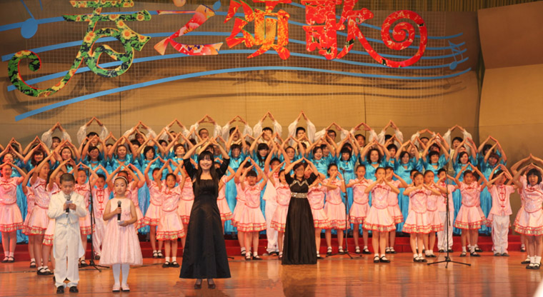 2010年5月26日,人大附中實(shí)驗(yàn)小學(xué)在海淀劇院舉行《春之頌歌》美德歌曲演唱會(huì)