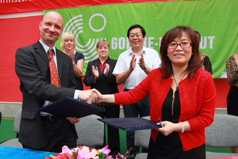 2012年9月24日,人大附中實(shí)驗(yàn)小學(xué)與德國(guó)文化中心歌德學(xué)院“歌德課堂”項(xiàng)目合作簽約,學(xué)校成為“歌德課堂”合作學(xué)校。(海