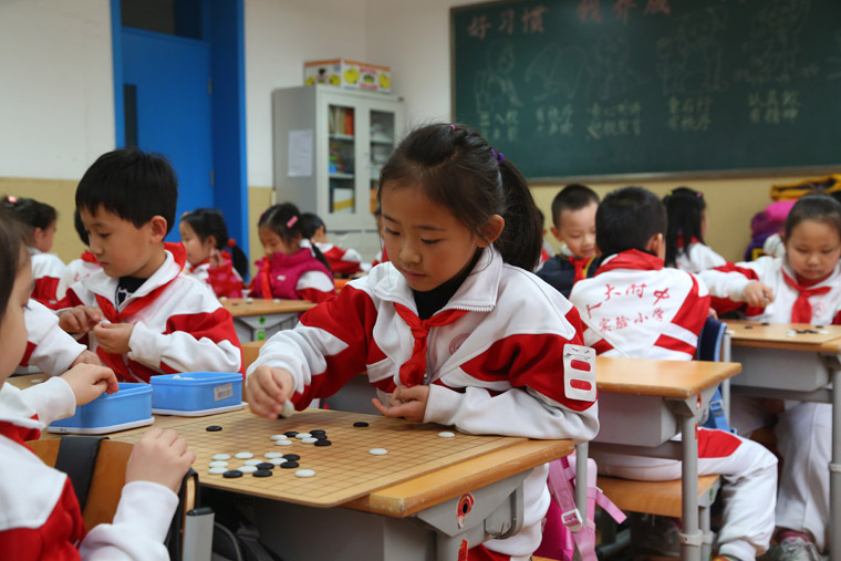 2012年9月,人大附中實(shí)驗(yàn)小學(xué)在一二年級(jí)開(kāi)設(shè)圍棋課程。
