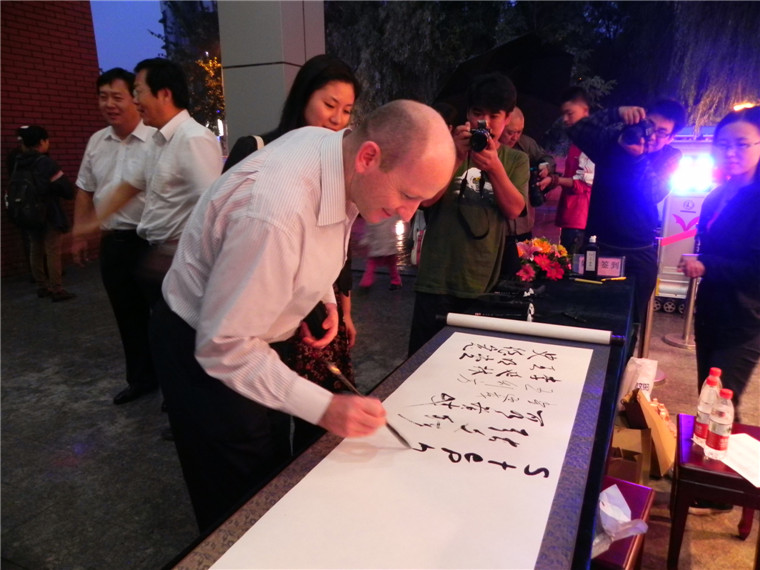 國際友人用中國傳統(tǒng)書寫方式簽到
