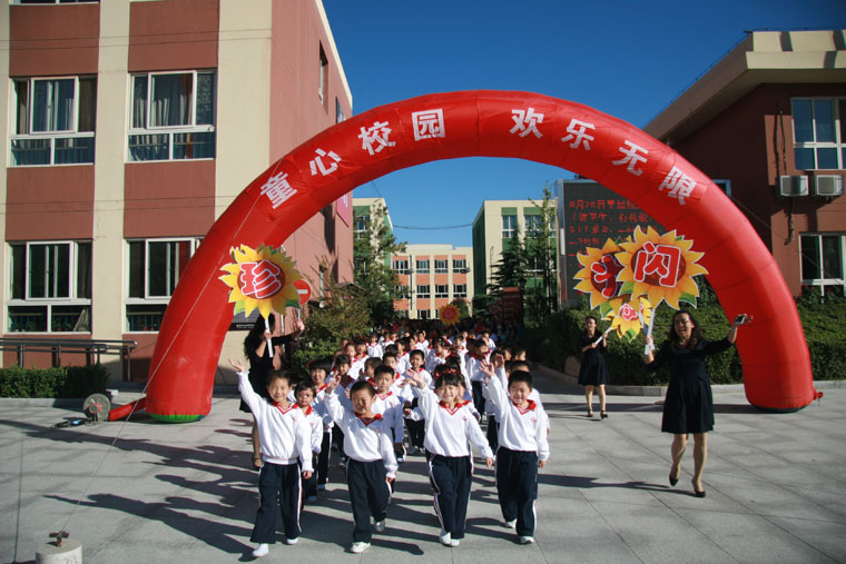 2012年11月1日,首師附小迎來海淀區(qū)小學2012年“四個十工程” 辦學理念考察項目組的各位專家評委們。此圖為:孩子們