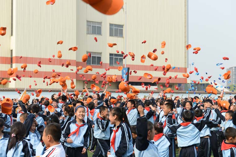 2013年5月2日,首師大附小的學生進行第二屆挑戰(zhàn)十小時活動。此圖為:“人塔迷宮”闖宮結(jié)束,快樂的場景