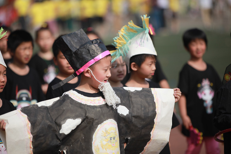 2013年6月1日,首師附小舉行“童心歡樂谷,穿越大游行”六一慶祝活動。此圖為:學生扮演的“包拯包大人”