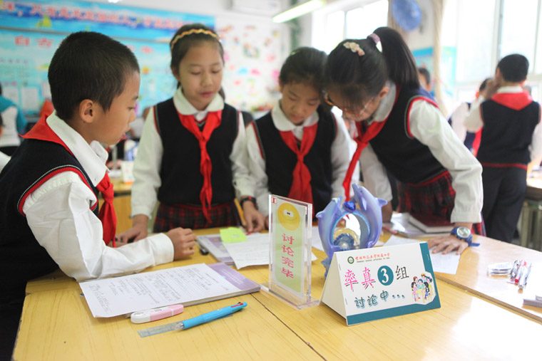 此圖為:首師附小的學生在童心課堂上進行小組合作
