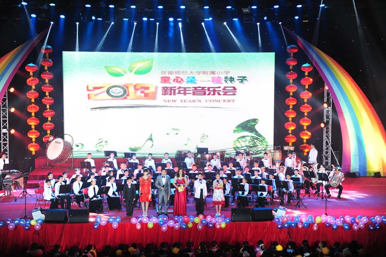 每一年首師附小都舉辦新年音樂會,為學生搭建自我展示的舞臺。此圖為:2012年12月31日舉行的《童心是一粒種子》童心音樂
