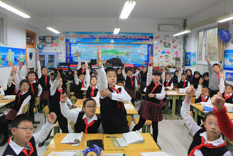 此圖為:首師附小的學生在童心課堂上踴躍的表現(xiàn)