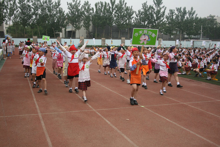 2012年9月29日,首師附小舉行體育節(jié)活動。此圖為:班級入場式以及學生自信的笑容