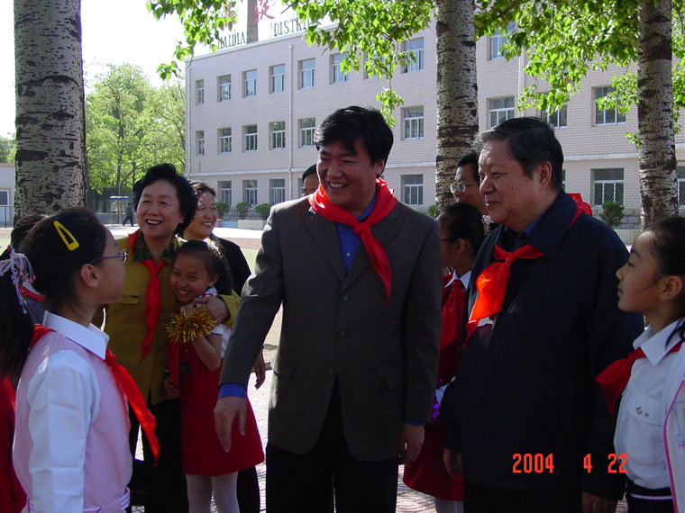 2004年4月22日中宣部常務(wù)副部長徐惟誠與教育專家盧勤參加太平路小學(xué)召開“紀(jì)念世界地球日”主題活動,