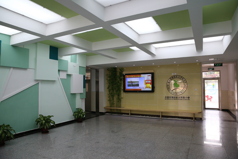 綠色典雅的教學(xué)樓門廳中以棕綠色為基調(diào)的;,是學(xué)校生態(tài)文明教育特色的體現(xiàn),更蘊(yùn)涵著兒童成長的人文要素。
