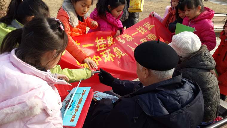 2014年1月18日太平路小學(xué)老師與家長校外輔導(dǎo)員一起帶領(lǐng)學(xué)生們走進(jìn)社區(qū)開展環(huán)保宣傳活動