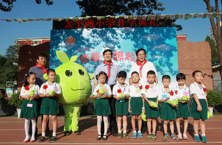 2013年9月1日海淀區(qū)主管文教衛(wèi)生工作的傅首清副區(qū)長參加了太平路小學(xué)開學(xué)典禮,并為新校旗的揭幕,同時為一年級新生贈送了