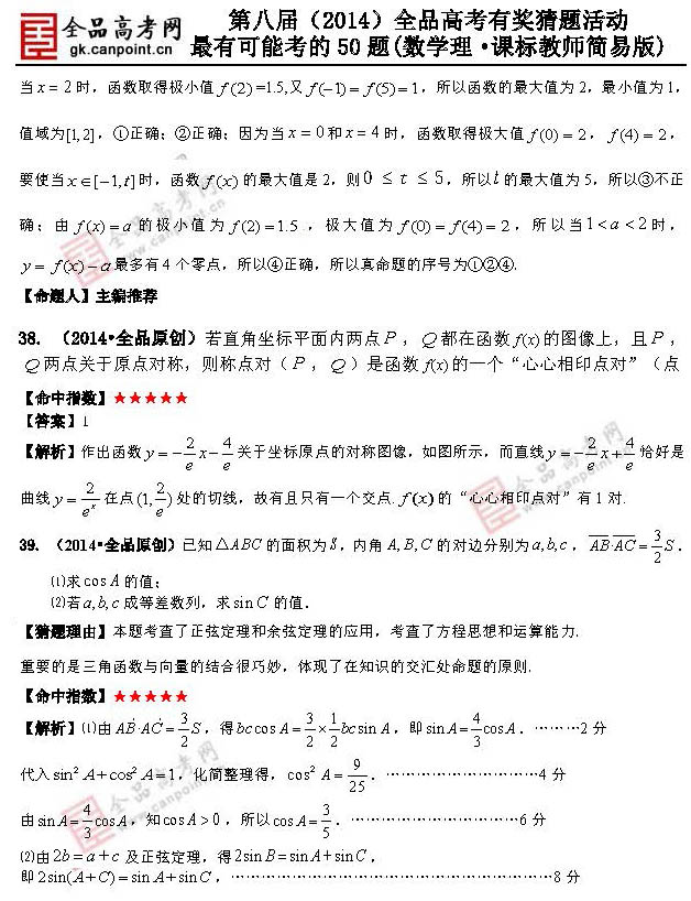 2014高考最有可能考的50道理科數(shù)學題【6】