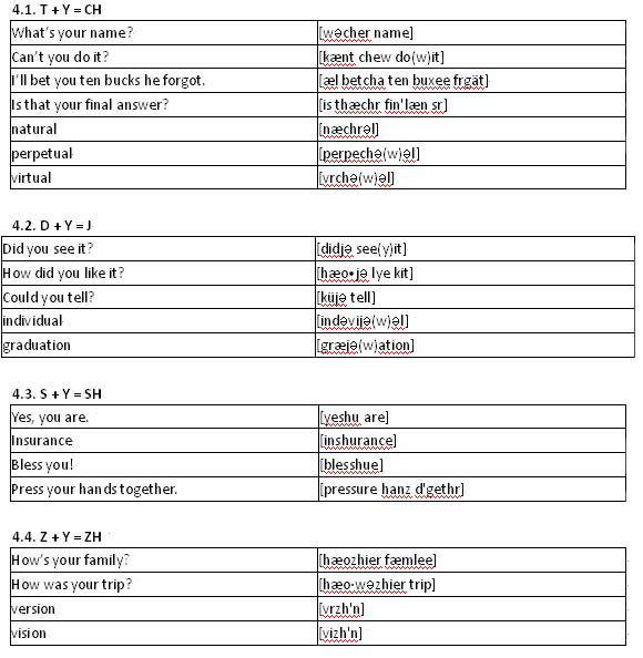 如果前面的單詞是以T/D/S/Z結(jié)尾,后面的單詞是以Y開頭(一般是you這個詞),那么有如下的連讀規(guī)則可以使用。
