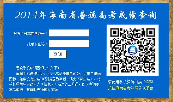 人民網(wǎng)北京6月24日電 海南2014年高考成績(jī)開始查詢,點(diǎn)擊進(jìn)行查詢。