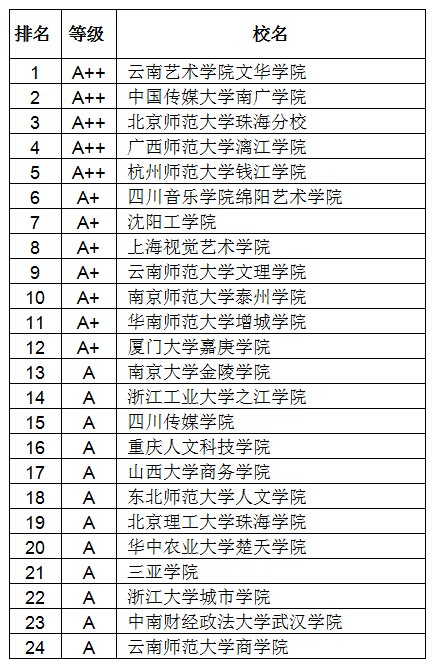 2014中國(guó)獨(dú)立學(xué)院藝術(shù)學(xué)A等學(xué)校排行榜