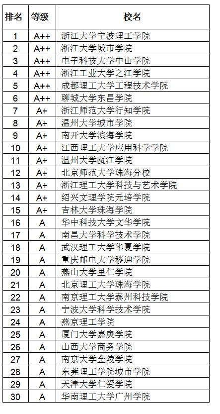 2014中國(guó)獨(dú)立學(xué)院工學(xué)A等學(xué)校排行榜