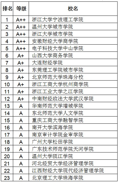2014中國獨(dú)立學(xué)院經(jīng)濟(jì)學(xué)A等學(xué)校排行榜