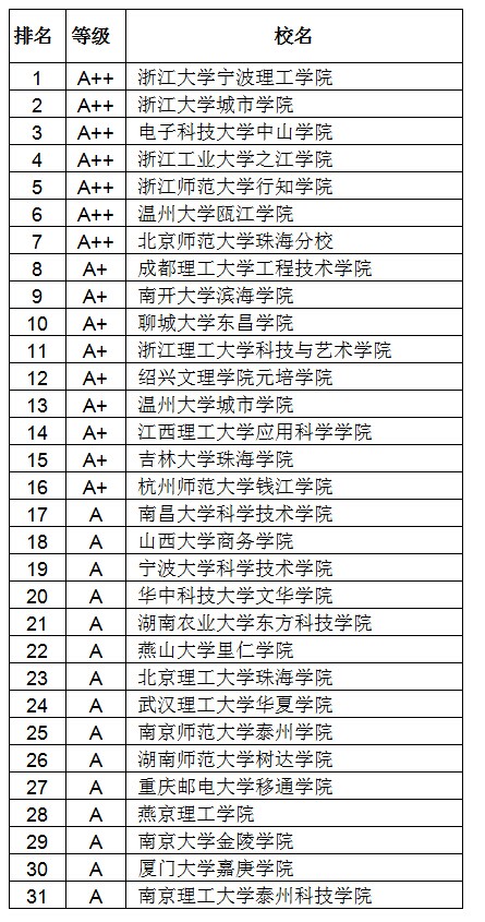 2014中國獨立學(xué)院自然科學(xué)A等學(xué)校排行榜