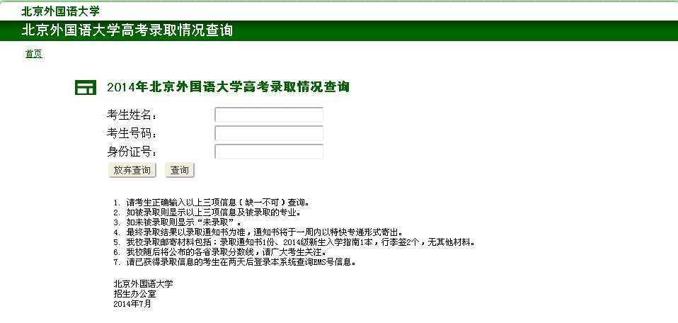 2014年北京外國(guó)語(yǔ)大學(xué)高考錄取查詢系統(tǒng)