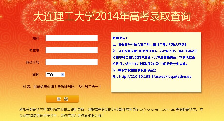 2014年大連理工大學(xué)高考錄取查詢系統(tǒng)