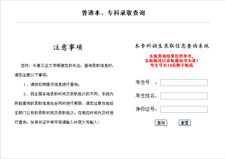 2014年長(zhǎng)春工業(yè)大學(xué)高考錄取查詢(xún)系統(tǒng)
