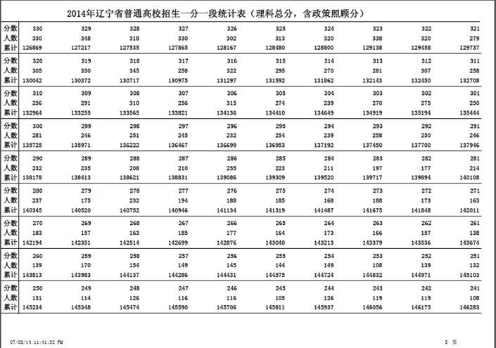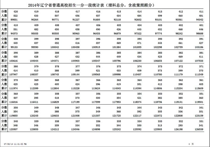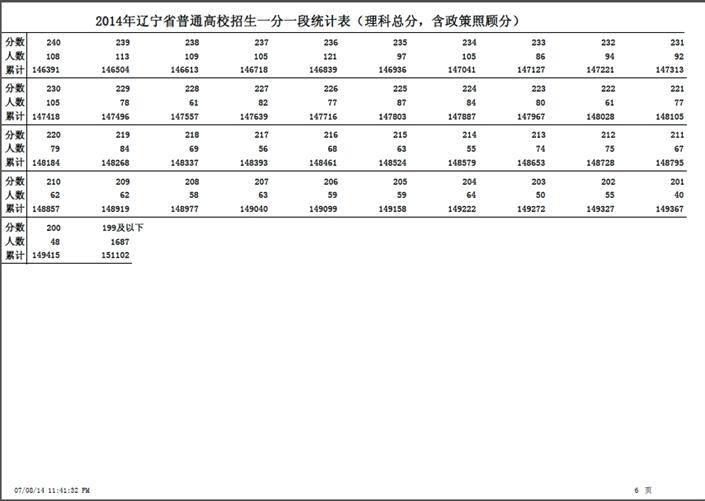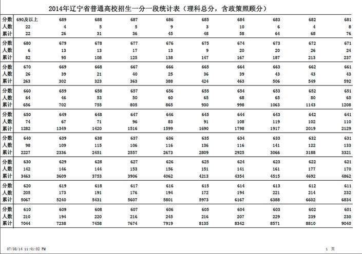 關(guān)于公布遼寧省2014年高考成績(jī)一分一段統(tǒng)計(jì)表的說明