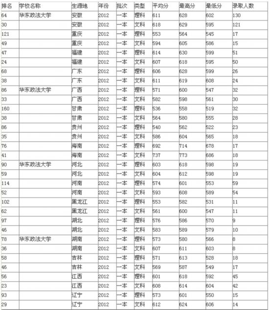 2013年上海華東政法大學(xué)各省錄取分?jǐn)?shù)線