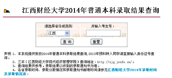 2014年江西財(cái)經(jīng)大學(xué)高考錄取查詢系統(tǒng)