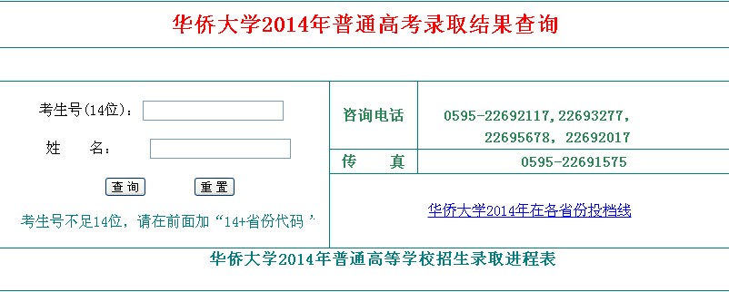 2014年華僑大學(xué)高考錄取查詢系統(tǒng)
