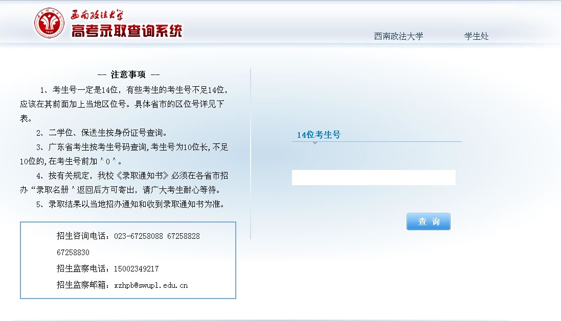 2014年西南政法大學(xué)高考錄取查詢系統(tǒng)