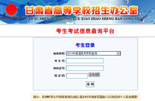 人民網(wǎng)7月11日電 2014年甘肅高考各批次錄取正在進(jìn)行中,考生可登陸甘肅省高等學(xué)校招生辦公室網(wǎng)站查詢錄取動(dòng)態(tài)及錄取結(jié)果。
