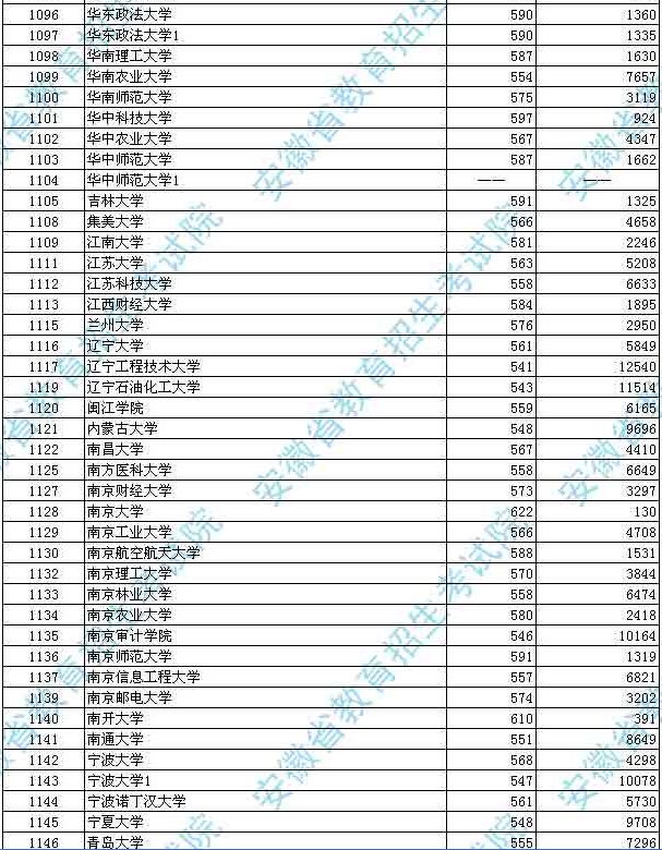 2014年安徽省本科第一批錄取院校投檔線【9】