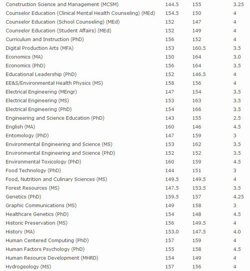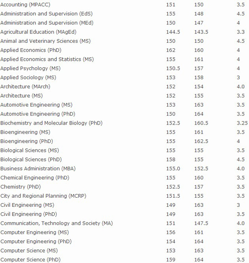 又到了2015年秋季入學申請季了,很多同學在準備最后的GRE或GMAT的沖刺考試,為了更好的給同學們一個參照,陳老師特別為大家總結了2014入學季美國排名前50的大學按不同專業(yè)劃分所要求的GRE及GMAT單項及寫作平均要求的分數。希望大家有個自我評估及參考,為確定目標院校及專業(yè)做好充足的準備。
