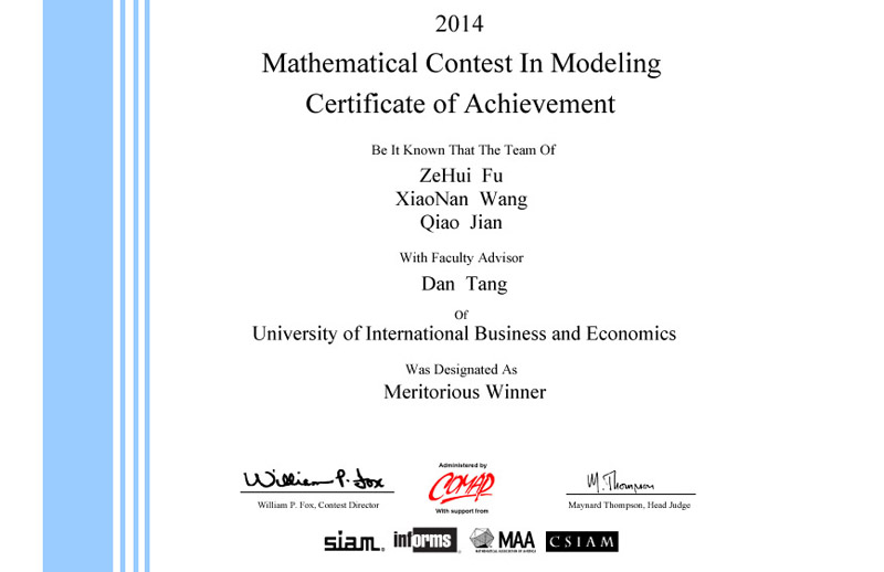 2014年美國(guó)數(shù)學(xué)建模比賽一等獎(jiǎng)證書(shū)