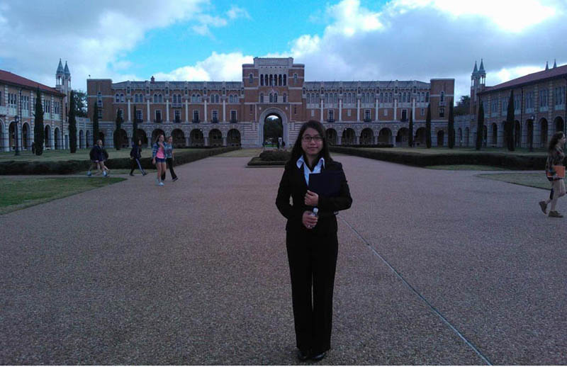 2012年的德州天空碧藍(lán)干凈澄澈,草坪茵綠、綠樹(shù)成蔭,優(yōu)美的校園環(huán)境猶如星光。符澤慧被公派到德州大學(xué)圣安東尼奧分校、萊斯大學(xué)、肯尼索州立大學(xué)進(jìn)行交流學(xué)習(xí)。不管是德州大學(xué)的墨西哥風(fēng)格建筑,還是萊斯大學(xué)如城堡林立的老式教學(xué)樓,都讓她覺(jué)得無(wú)比新鮮和羨慕。在美國(guó)的所見(jiàn)所聞,讓符澤慧看到了中西教育的差別,這更激勵(lì)著符澤慧奮發(fā)圖強(qiáng)。在大學(xué)后來(lái)的日子,她陸續(xù)參與商務(wù)部、教育部、學(xué)校的科研課題,因表現(xiàn)出色被推薦至中科院政策所擔(dān)任助理研究員。