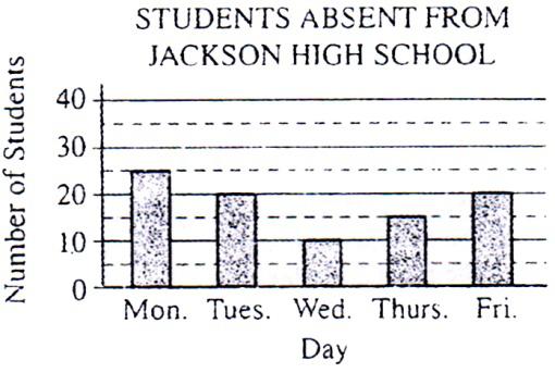 以上圖形說(shuō)明了杰克遜高中上周每一天的學(xué)生缺勤情況。在缺勤的學(xué)生中,有8名學(xué)生缺勤兩天,1名學(xué)生缺勤三天,沒(méi)有一位學(xué)生缺勤超過(guò)三天。假如該校學(xué)生上周有5%至少缺勤一天,請(qǐng)問(wèn)杰克遜高中在校學(xué)生是多少?